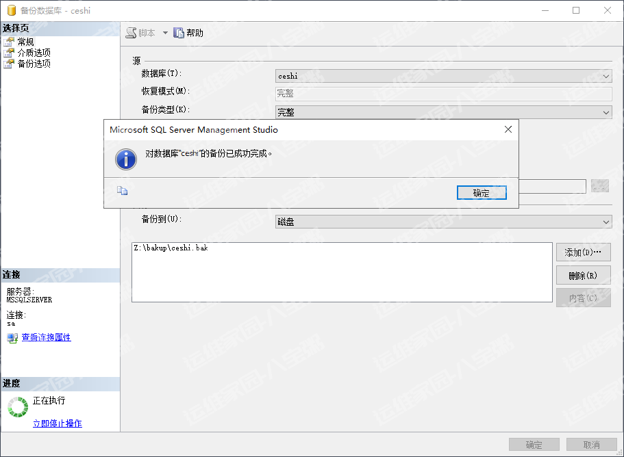 接下来就可以配置alwayson了,首先创建一个ceshi测试库然后备份,我是给备份到Z盘下的bakup目录下