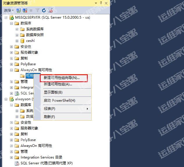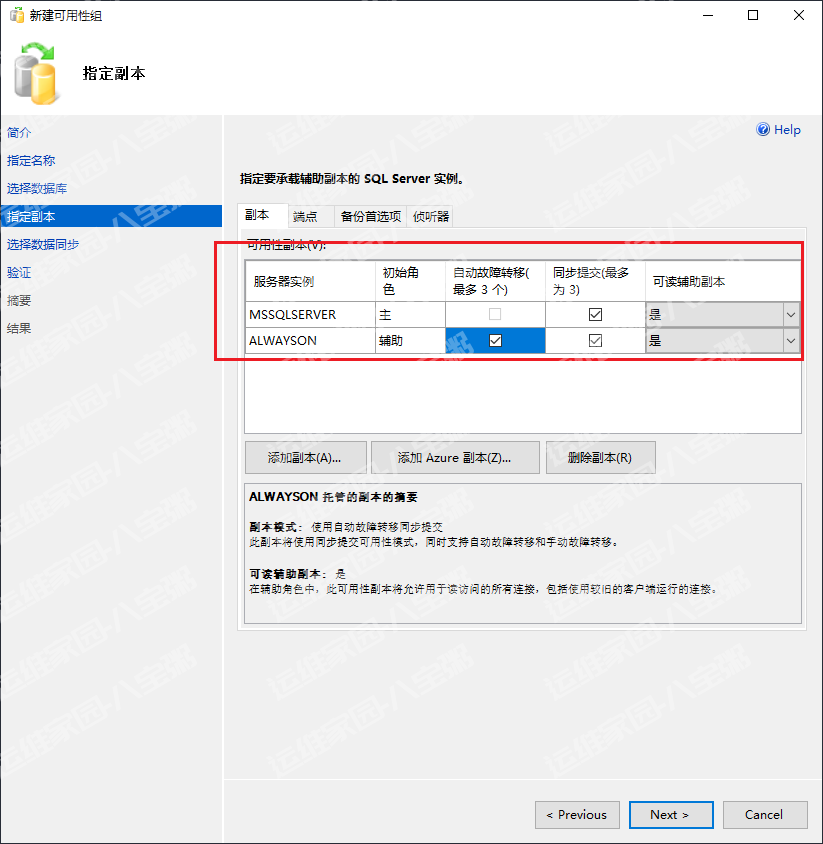 选择alwayson高可用>可用性组,新建高可用性组向导