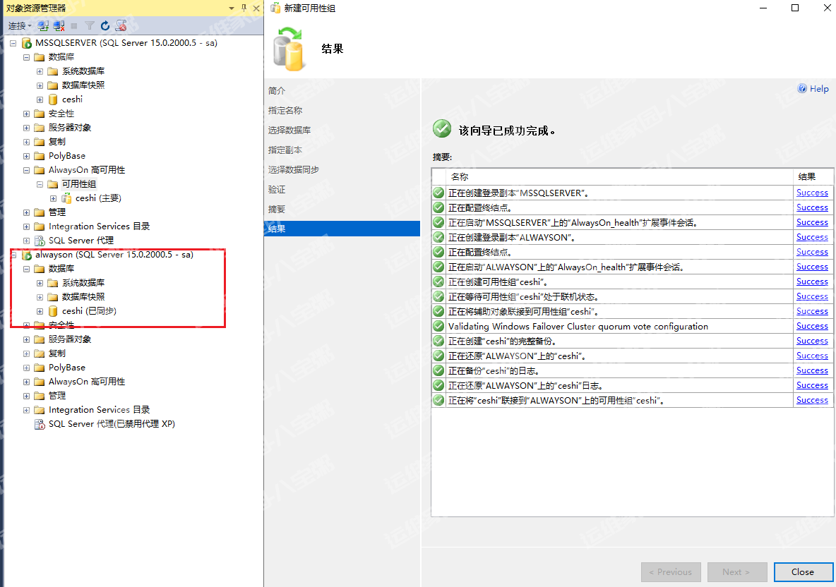 开启主库上的alwayson功能,步骤是一样的,主库就已经在集群中了,注意主库有两个,都要开启