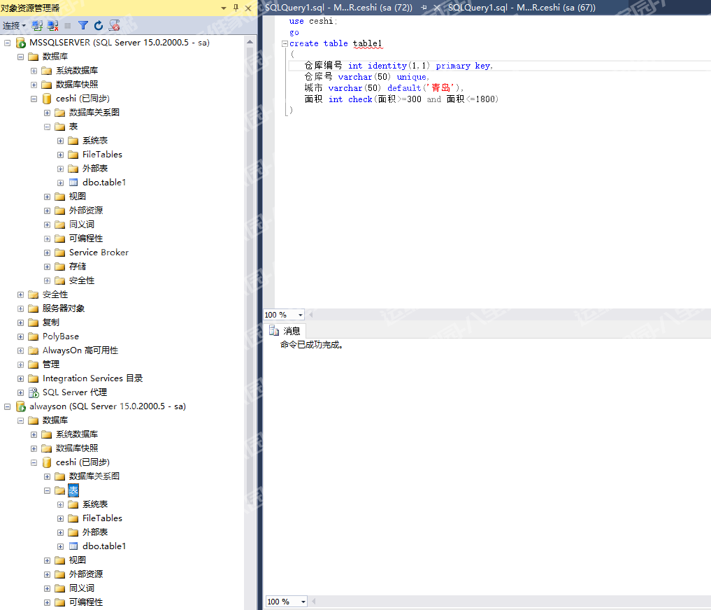 创建完成,从库上也出现了ceshi数据库,并出现已同步字样