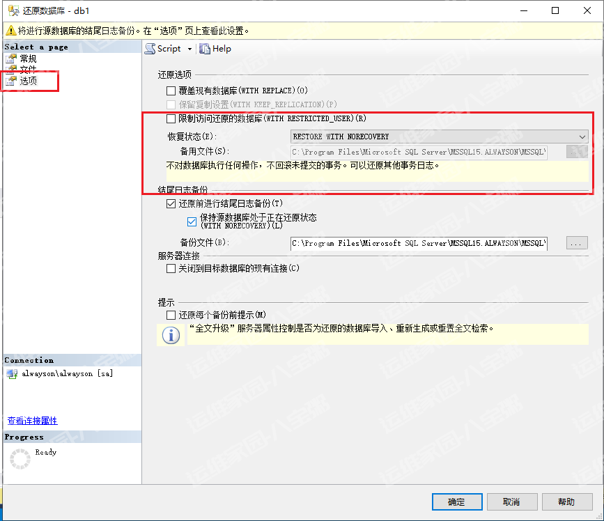 恢复时选择恢复状态为restore with norecovery