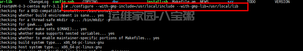 ./configure --with-gmp-include=/usr/local/include --with-gmp-lib=/usr/local/lib(由于mpfr依赖于gmp这个库,所以在configure时,需要设置好gmp库所在的位置,供安装mpfr库时使用。)