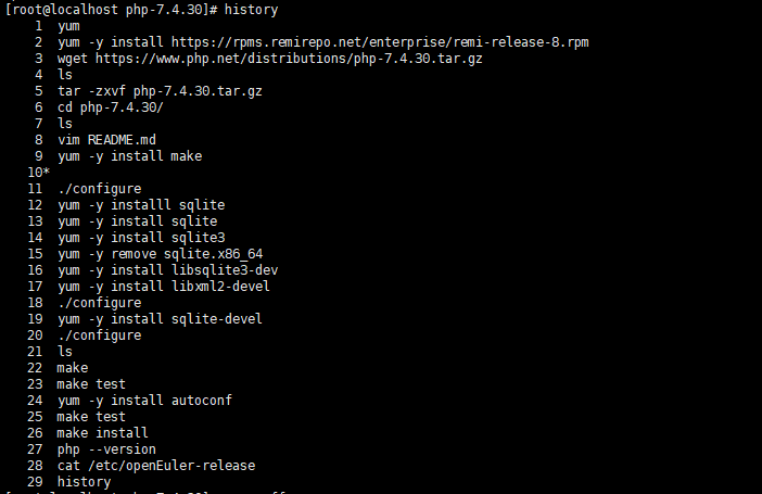 [root@localhost php-7.4.30]# history