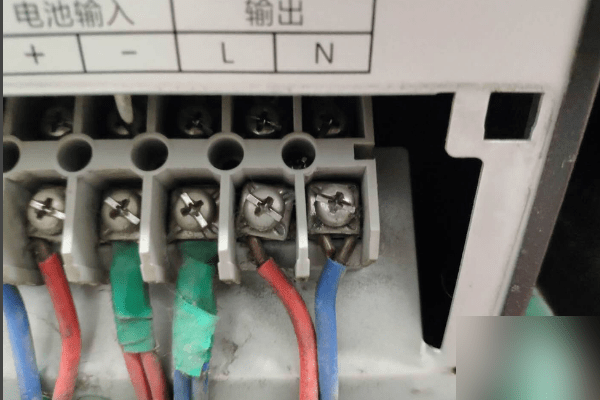 4、主机输入会有两种形式,一种形式是市电接入、一种形式是电池接入,市电接入就是220V或者380V电源接入,火线接入L、零线接入N。