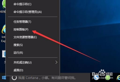 右键点击Windows10桌面左下角的图标,在弹出菜单中选择“控制面板”菜单项
