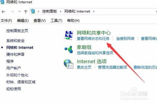 这时会打开网络和Internet窗口,在这里选择“查看网络状态和任务”快捷链接,点击该链接。