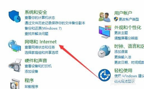 在打开的控制面板窗口中,点击“网络和Internet”图标