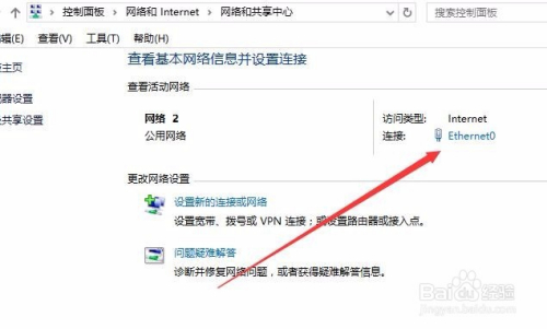 在打开的网络和共享中心窗口中,我们点击有线网络的连接