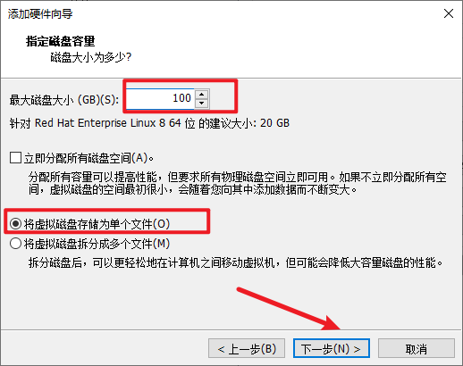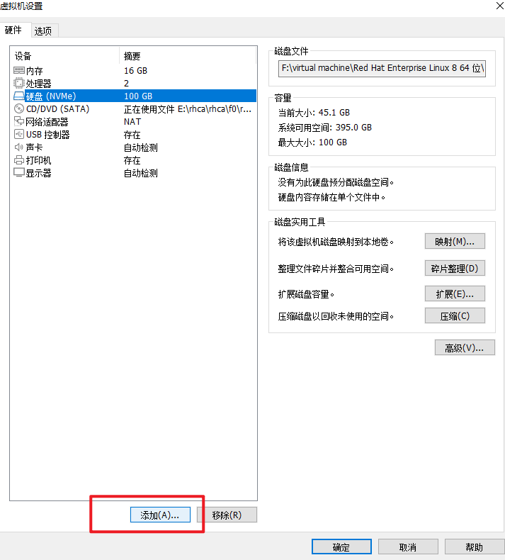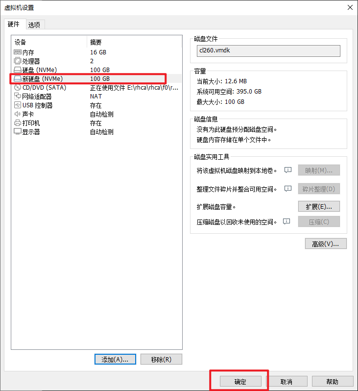 三、关闭虚拟机,添加一个100G的硬盘,最小建议大于64G
