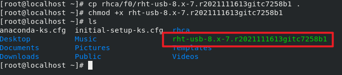 将F0里的rht-usb-8.x-7.r2021111613gitc7258b1文件复制到当前目录并给执行权限