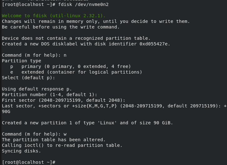 格式化刚刚添加的100G硬盘,注意,这里的100G不要分完,留4G左右
