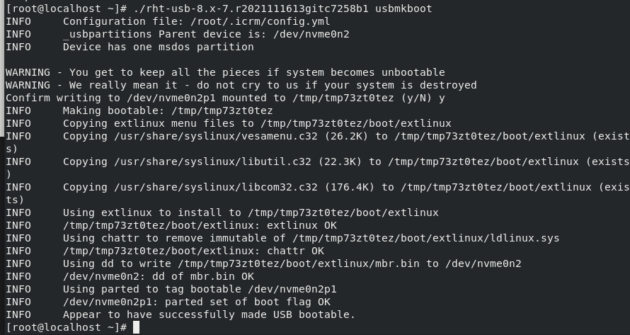 执行./rht-usb-8.x-7.r2021111613gitc7258b1 usbformat /dev/nvme0n2p1格式化优盘,格式化成功