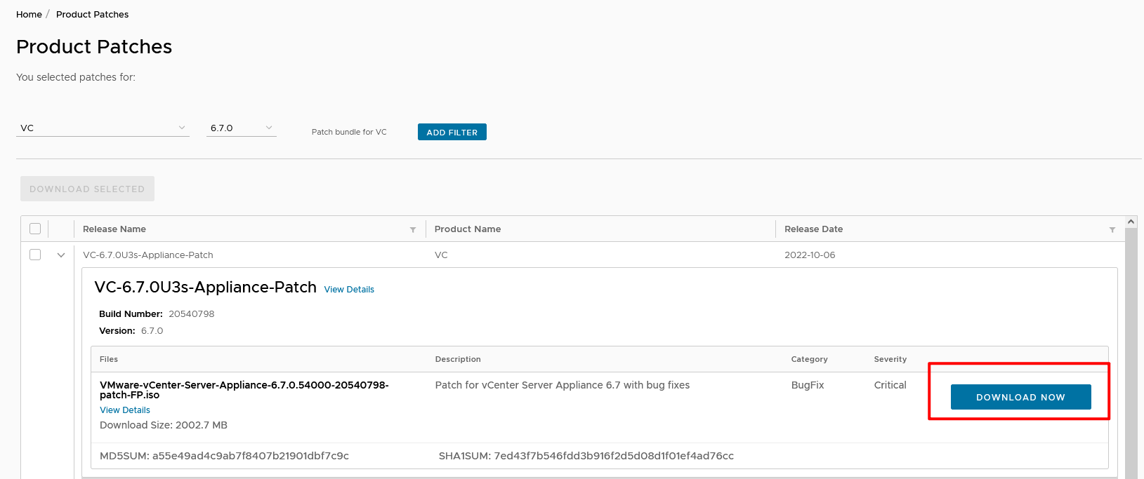 补丁下载地址:https://customerconnect.vmware.com/patch