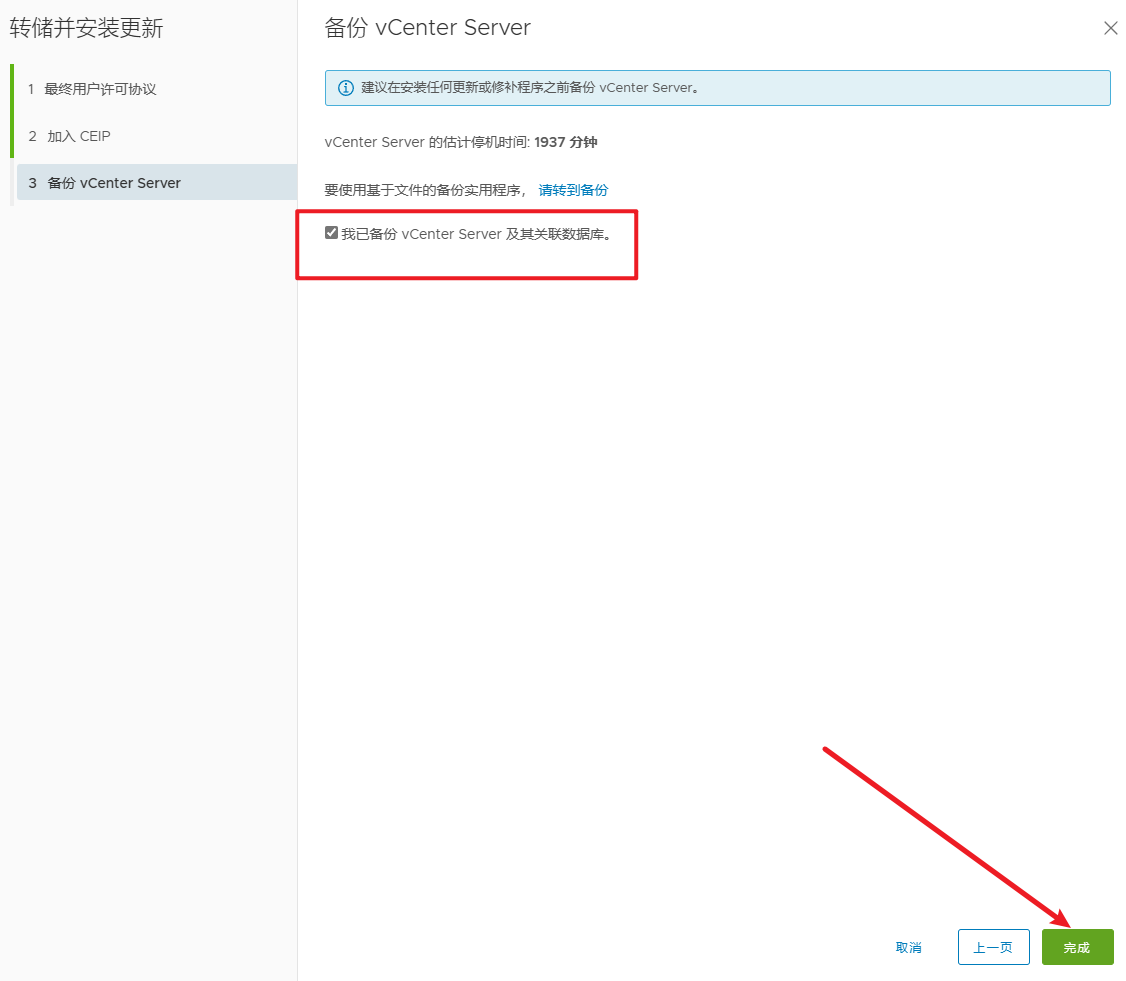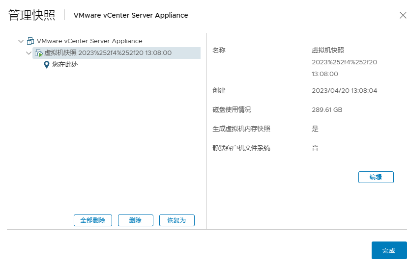 先给现有的vcenter主机做一个快照,方便升级失败的回滚操作,选择生成快照然后等待完成即可