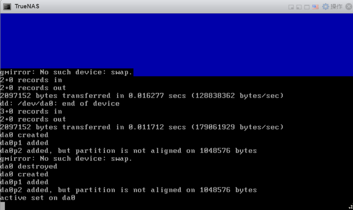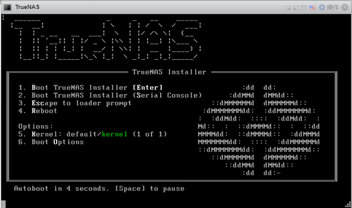 1、按1选择”1. Boot TreeNAS Installer [Enter]“