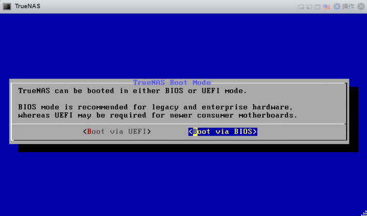 7、引导模式,我这边选择是“Boot via BIOS”,回车