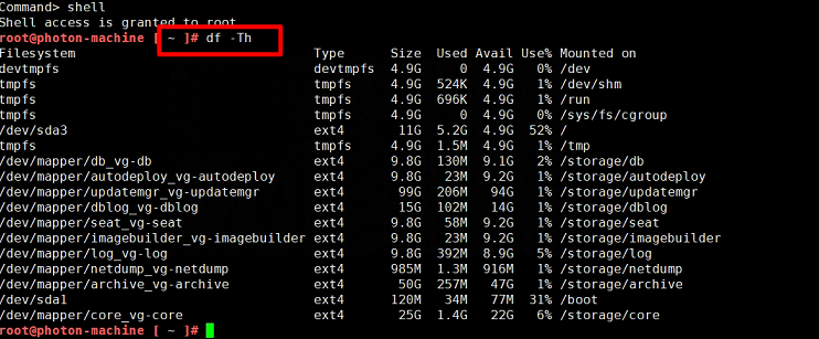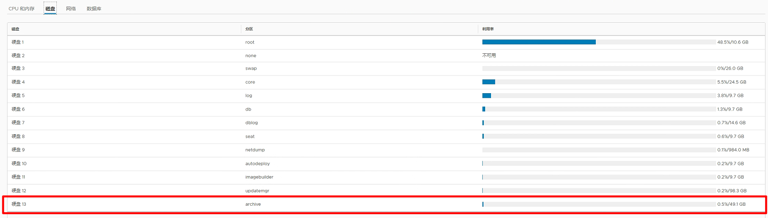 首先进入vcenter appliance,查看磁盘使用率,我这里只是测试环境,所以使用率还很低