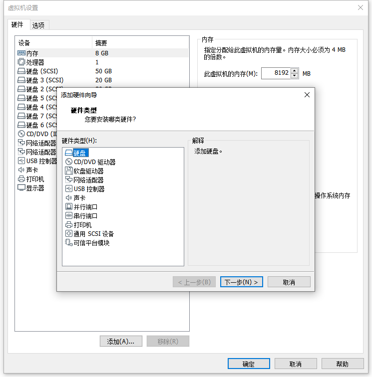 按照 1.3 规划,添加 4 块硬盘