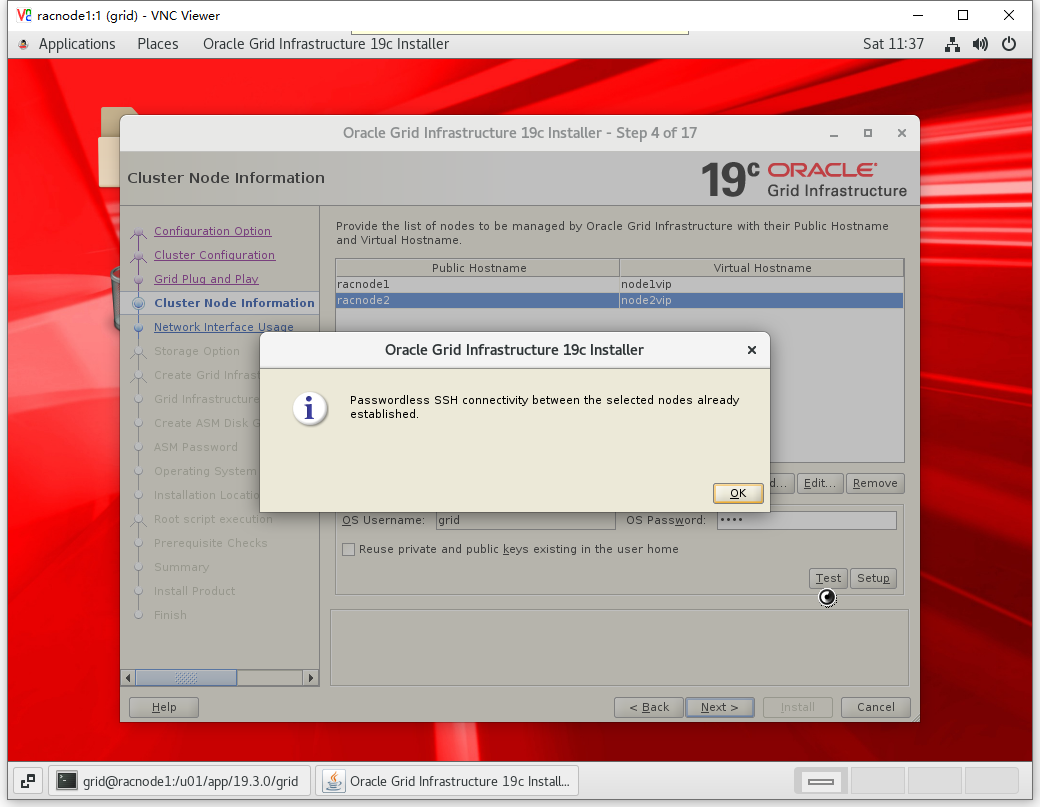 su - grid rm -rf ~/.ssh mkdir ~/.ssh ssh-keygen -t rsa ssh-keygen -t dsa