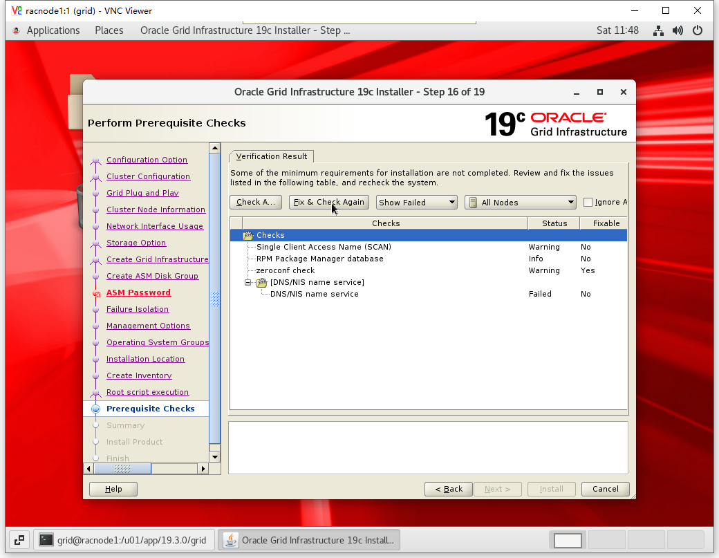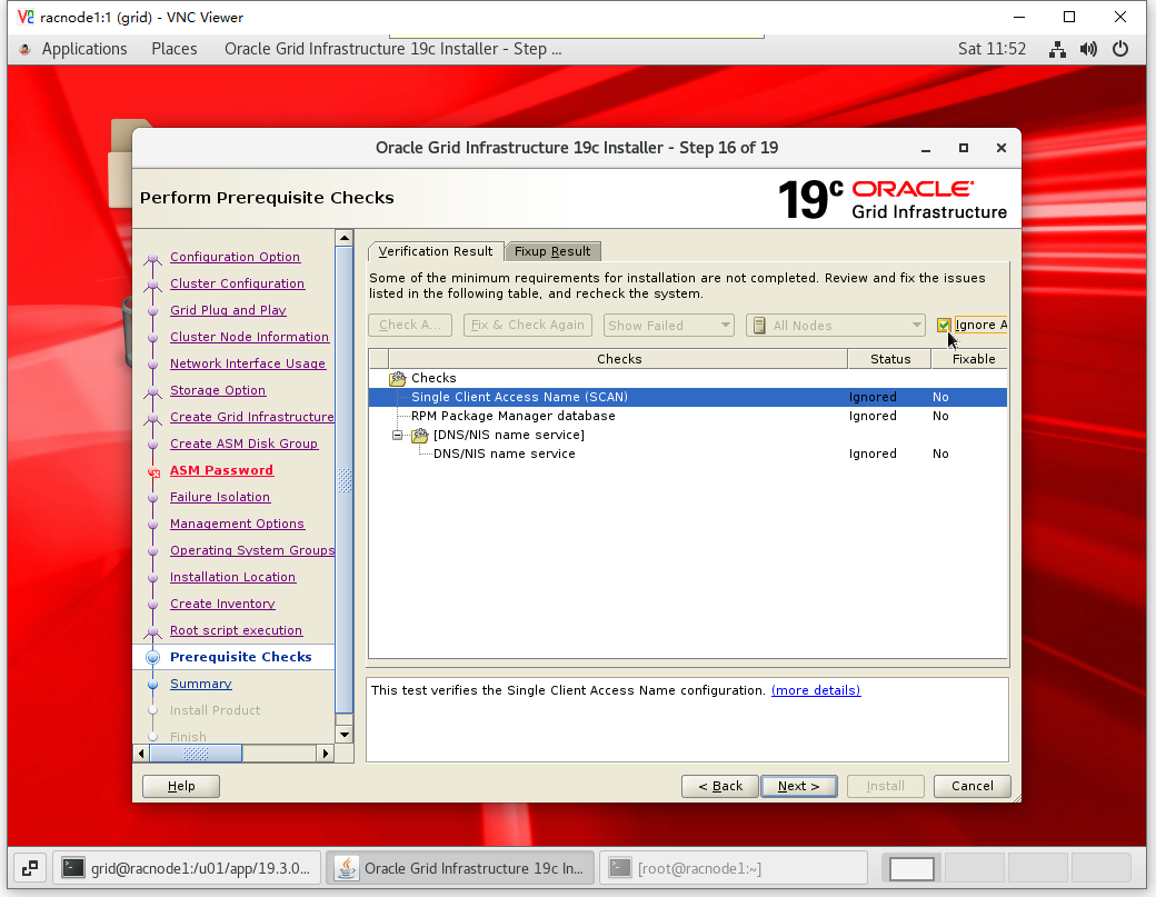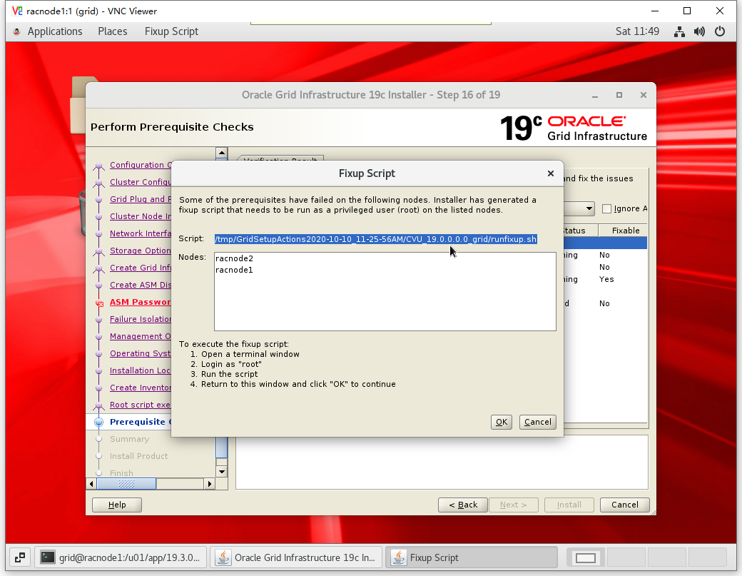 [root@racnode1 ~]# cd /u01/app/19.3.0/grid/cv/rpm/ [root@racnode1 rpm]# rpm -ivh cvuqdisk-1.0.10-1.rpm Preparing... ################################# [100%] Using default group oinstall to install package Updating / installing... 1:cvuqdisk-1.0.10-1 ################################# [100%]
