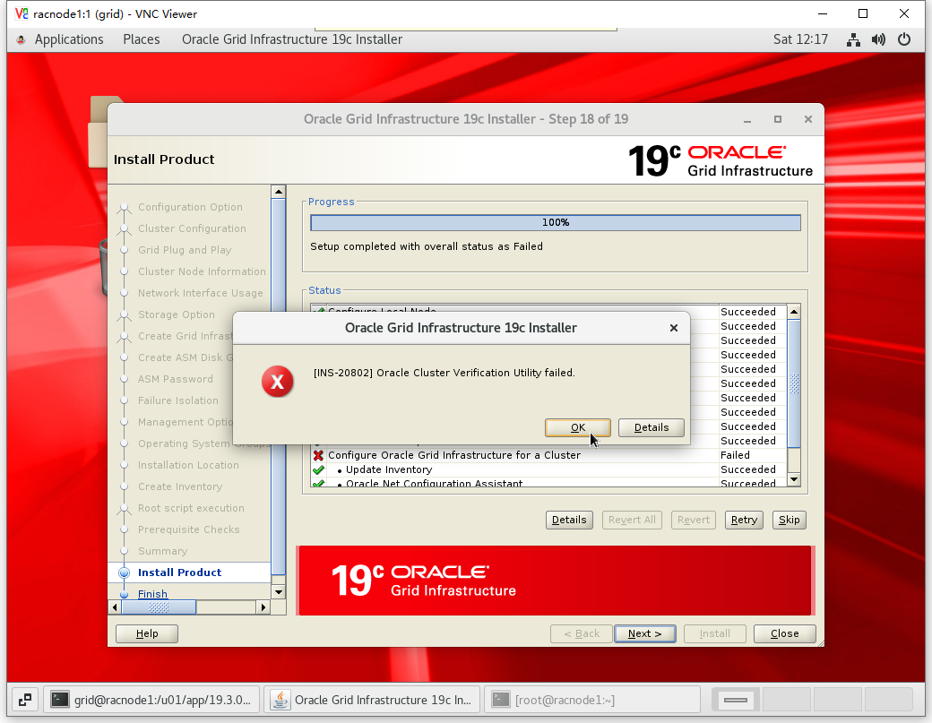 [root@racnode1 ~]# chmod -R 777 /soft/ [root@racnode1 ~]# su - grid Last login: Wed Sep 30 10:18:34 CST 2020 on pts/0 [grid@racnode1:/home/grid]$cd $ORACLE_HOME [grid@racnode1:/u01/app/19.3.0/grid]$unzip -q /soft/LINUX.X64_193000_grid_home.zip