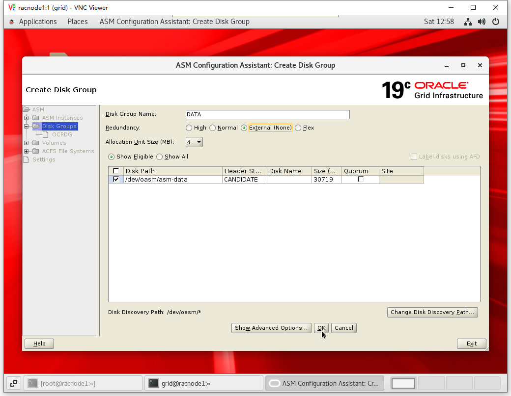 [grid@racnode1 ~]$ asmca
