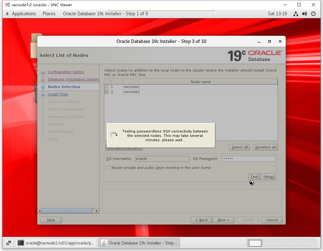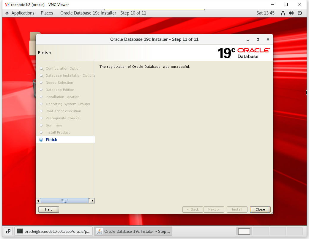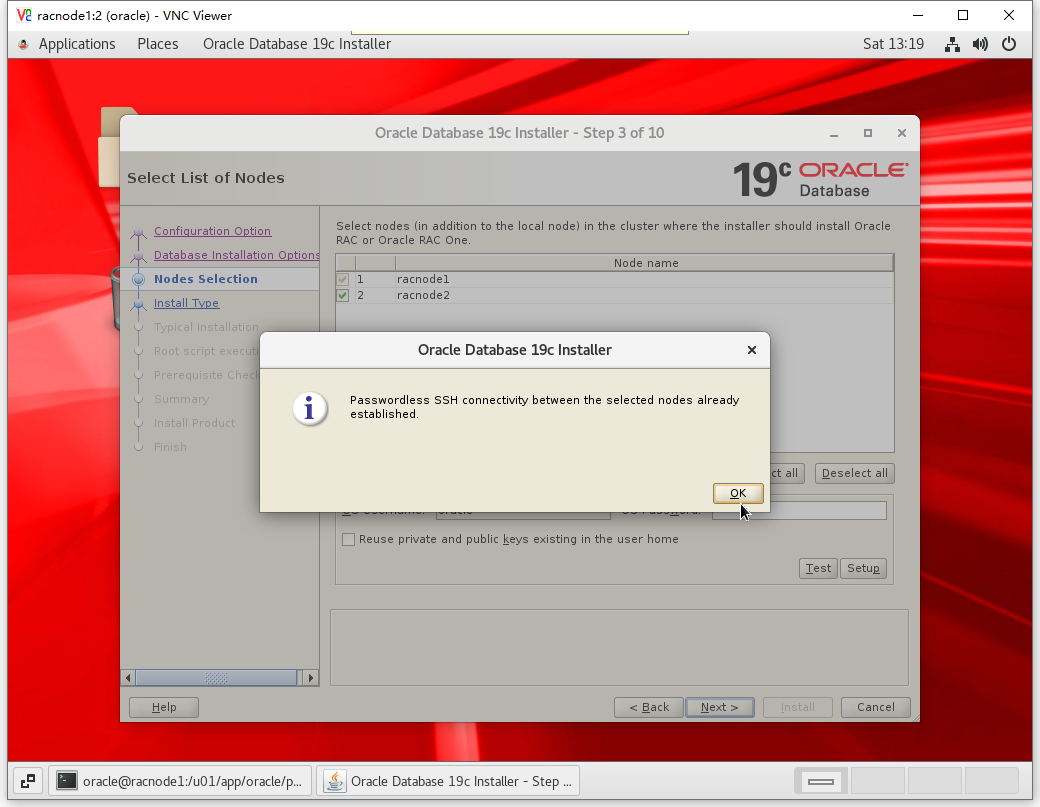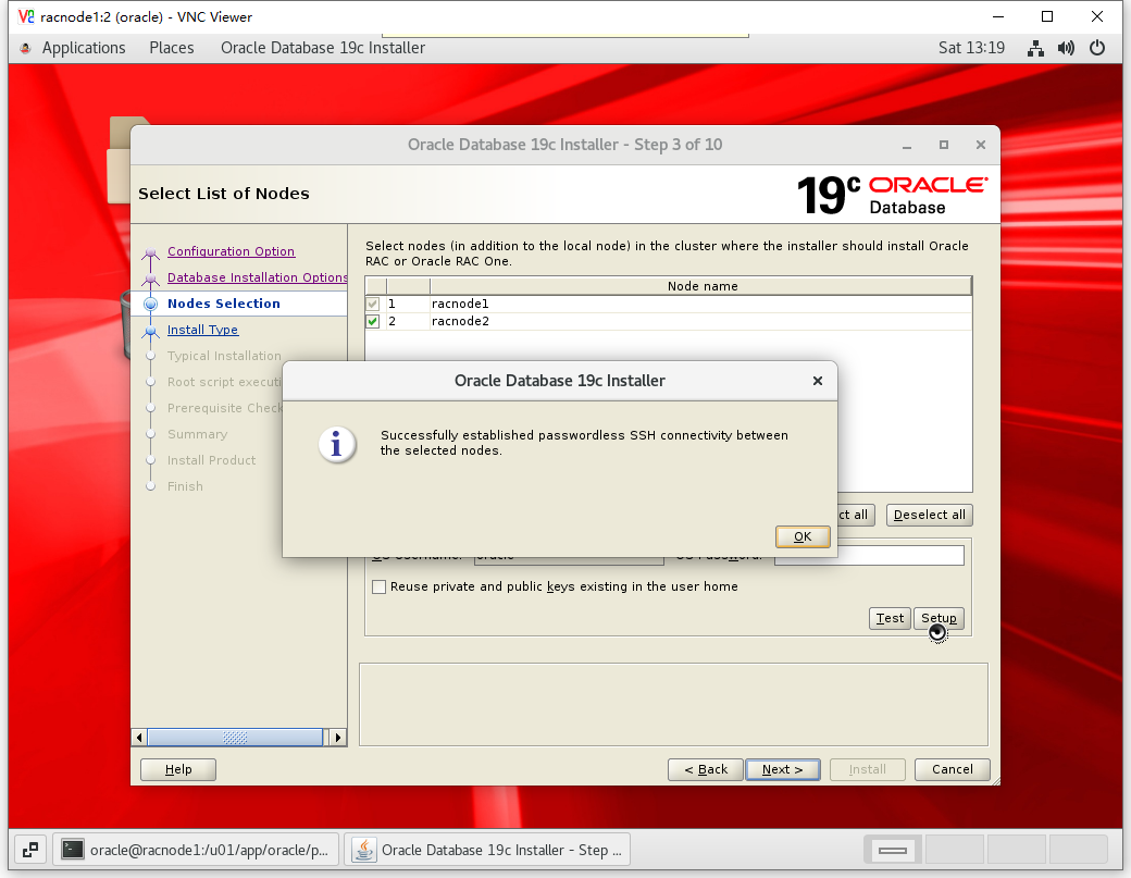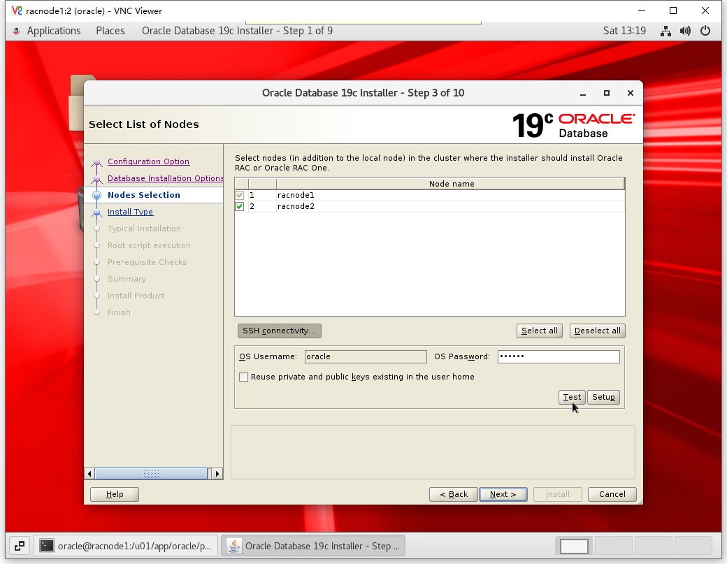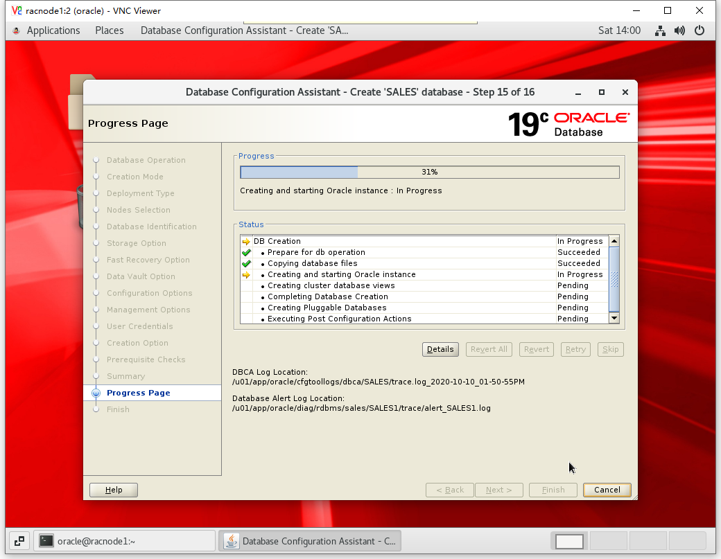 [root@racnode2 ~]# /u01/app/oracle/product/19.3.0/dbhome_1/root.sh Performing root user operation. The following environment variables are set as: ORACLE_OWNER= oracle ORACLE_HOME= /u01/app/oracle/product/19.3.0/dbhome_1 Enter the full pathname of the local bin directory: [/usr/local/bin]: The contents of "dbhome" have not changed. No need to overwrite. The contents of "oraenv" have not changed. No need to overwrite. The contents of "coraenv" have not changed. No need to overwrite. Entries will be added to the /etc/oratab file as needed by Database Configuration Assistant when a database is created Finished running generic part of root script. Now product-specific root actions will be performed.
