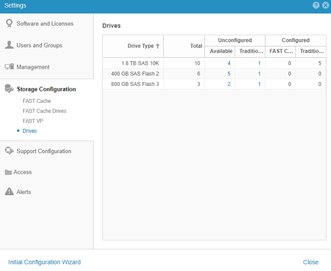 Unity 强制实施热备盘策略,即给定类型的每 4 个驱动器中就有 0 个。