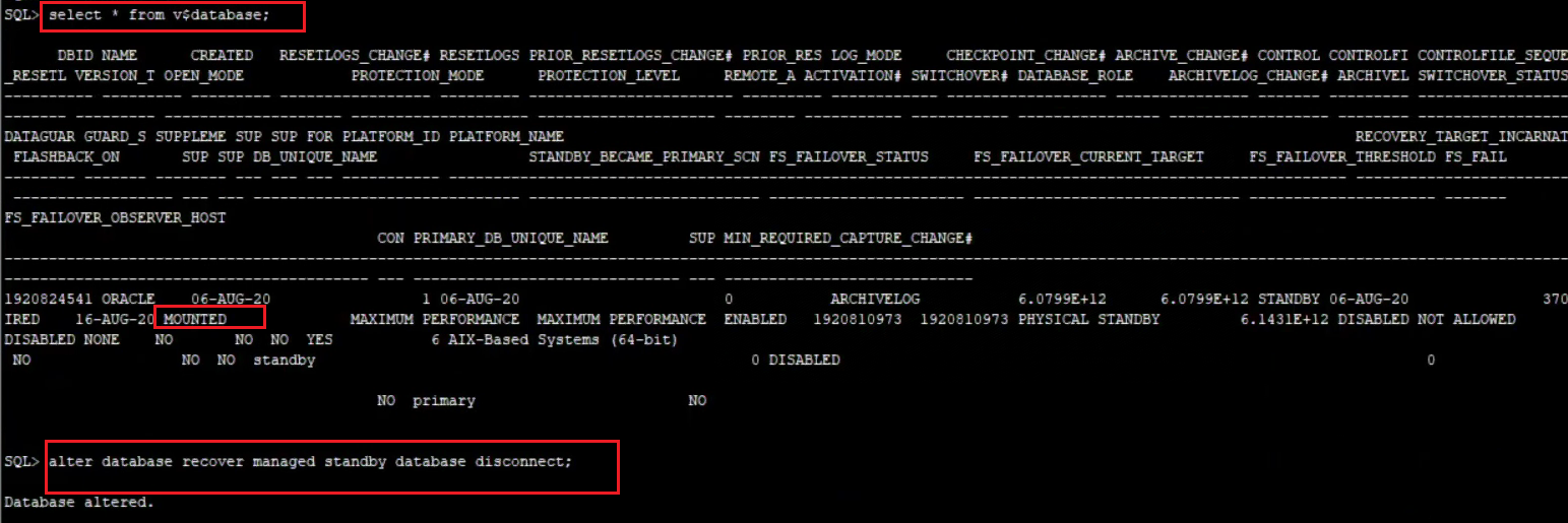 ALTER DATABASE RECOVER MANAGED STANDBY DATABASE DISCONNECT;