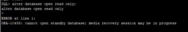 如果可以连接到主库,但是备库状态显示为“MOUNTED”,那么可以通过以下命令将其转为“READ ONLY”状态。