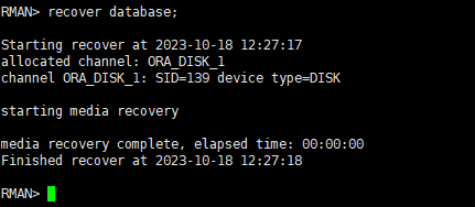 如果在其它命令行界面启动数据库,则rman也需要退出重进