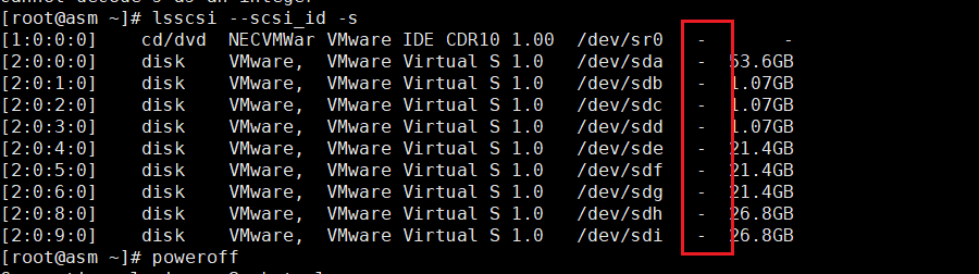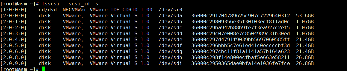 [root@asm ~]# lsscsi --scsi_id -s