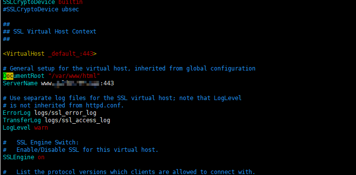 上面以粗体突出显示的部分 是您需要根据证书文件所在的文件路径进行编辑的部分。请确保以粗体显示的属性前面没有“#”(注释);如果有,请删除该符号以取消注释。