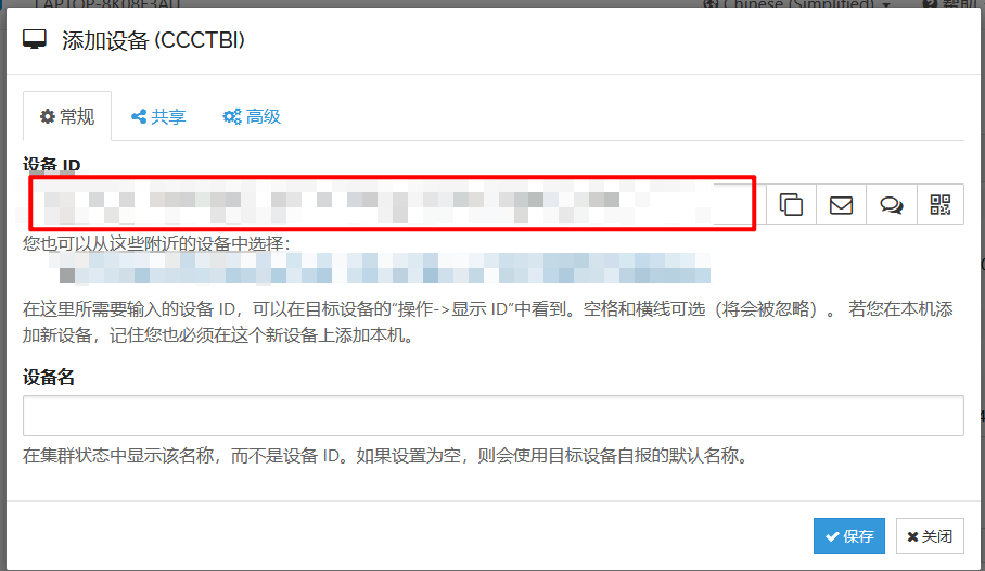 把设备id填到框里,保存就可以了