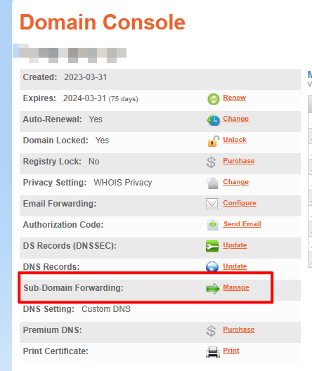 选择子域名管理