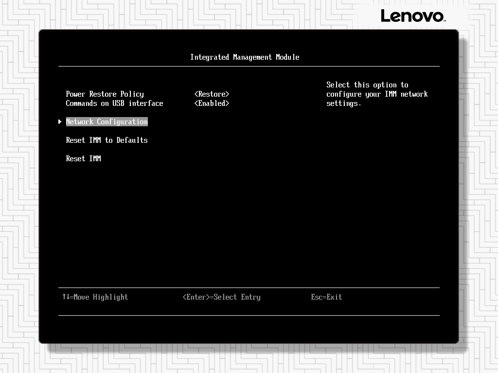 进入Network Configuration设置IMM远程管理口的IP地址。