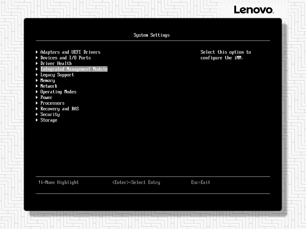 注:如果IMM无法登陆或者发生问题需要恢复,可以选择”Reset IMM to Defaults”恢复IMM默认设置(包括IP地址及用户),或者选择”Reset IMM”重启IMM功能。在UEFI Setup中恢复或重启IMM可能会出现数分钟操作无响应的情况,风扇也会全速转动。