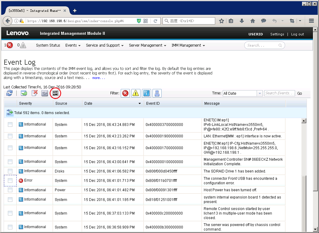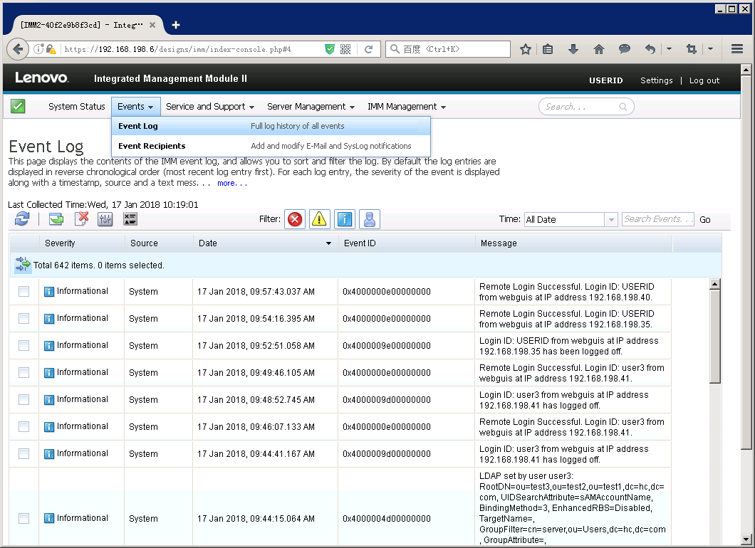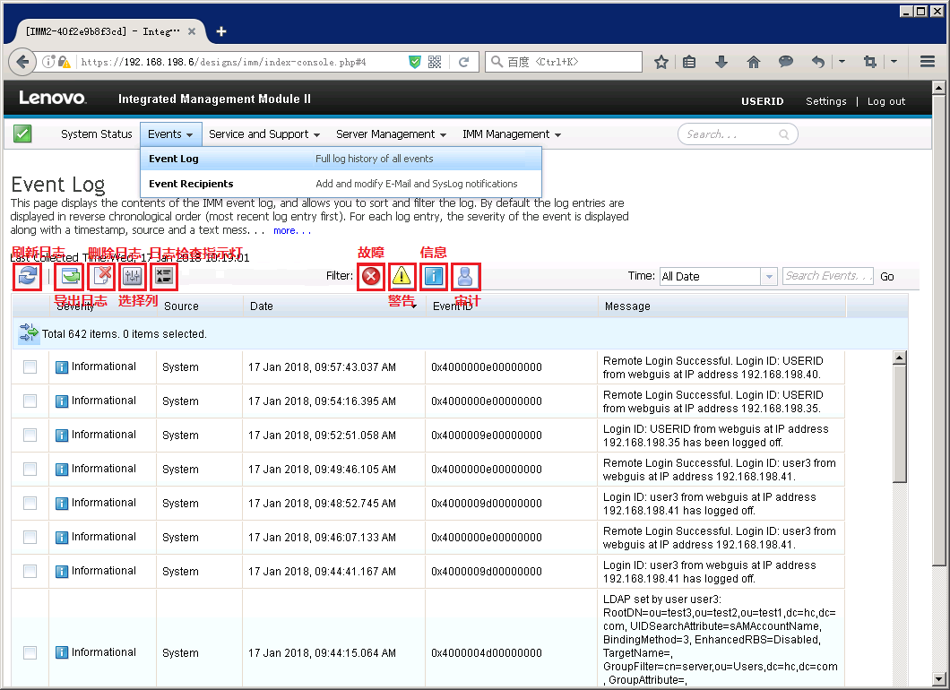 进入IMM事件日志界面,即可查看服务器日志。