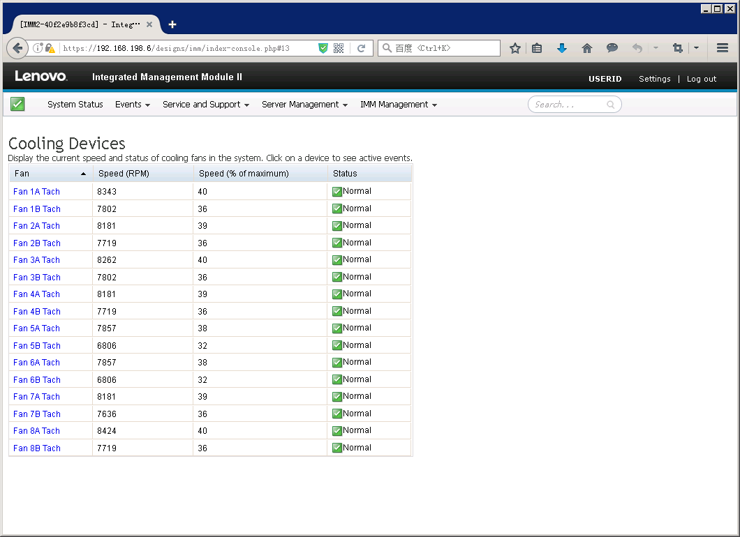 Cooling Devices,冷却系统页面,在此页面可以查看风扇状态及转速。