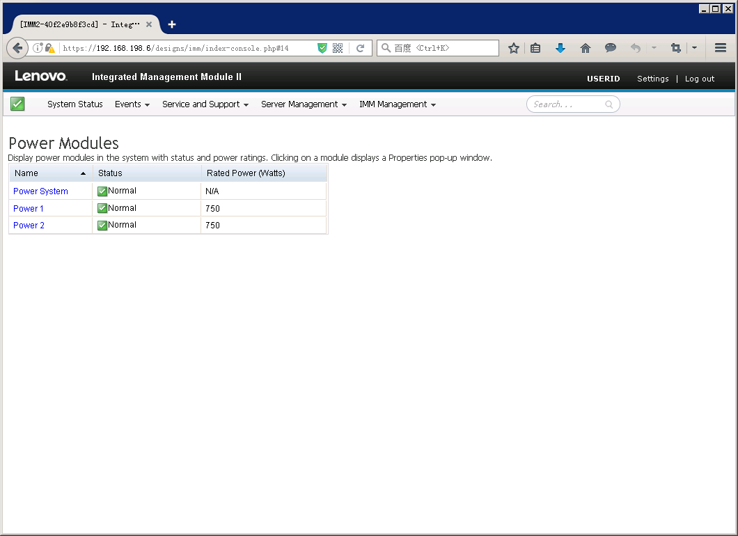 Power Modules,电源模块页面,在此页面可以查看已插入的电源模块信息。