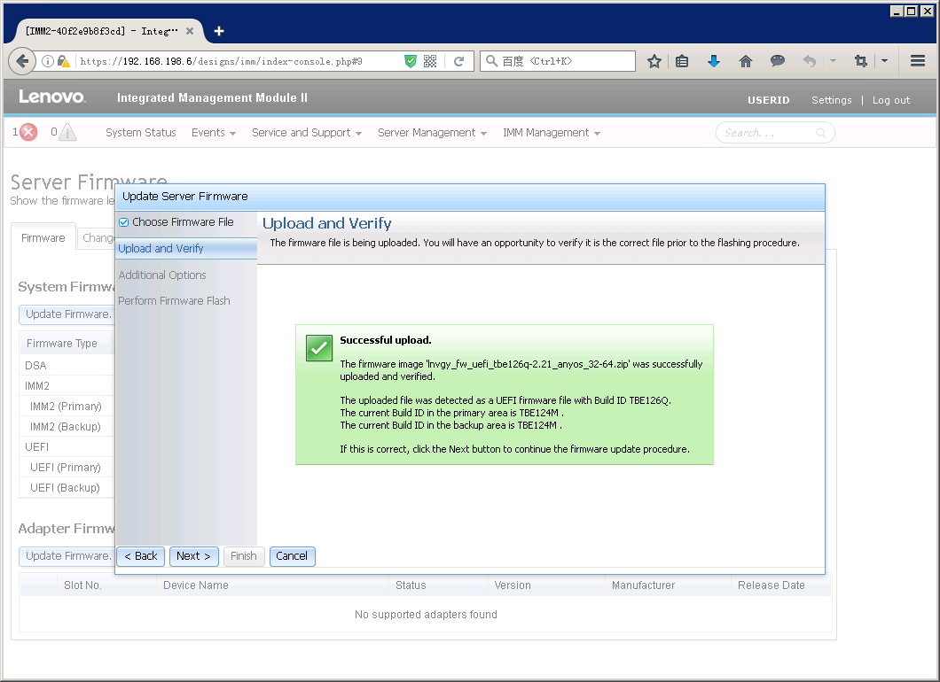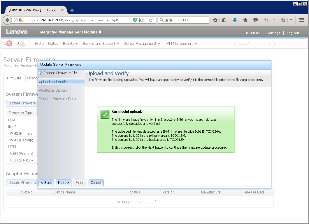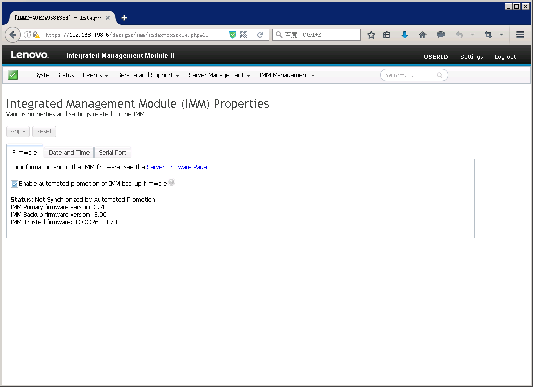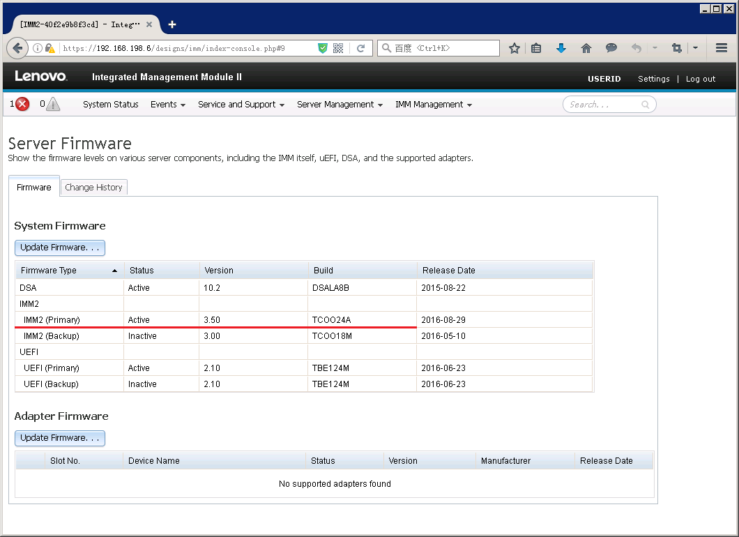 重新登陆IMM后,在Server Firmware页面就可以看到IMM主微码已经更新。
