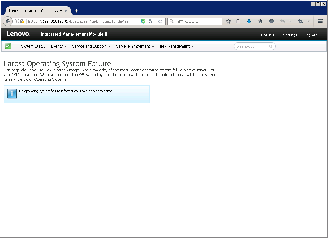 Latest Operating System Failure,系统崩溃截图页面,在此页面可以设置和查看上一次Windows Server系统蓝屏,需要配合Watchdog功能使用。