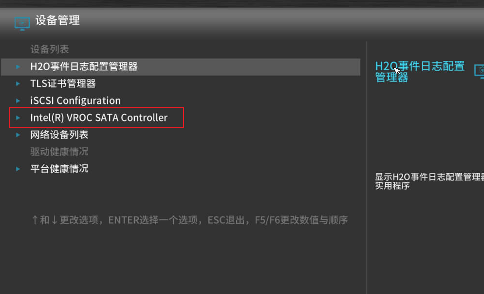 开机到设备管理器里是看不到有关阵列卡的信息只有H2O日志管理和iscsi