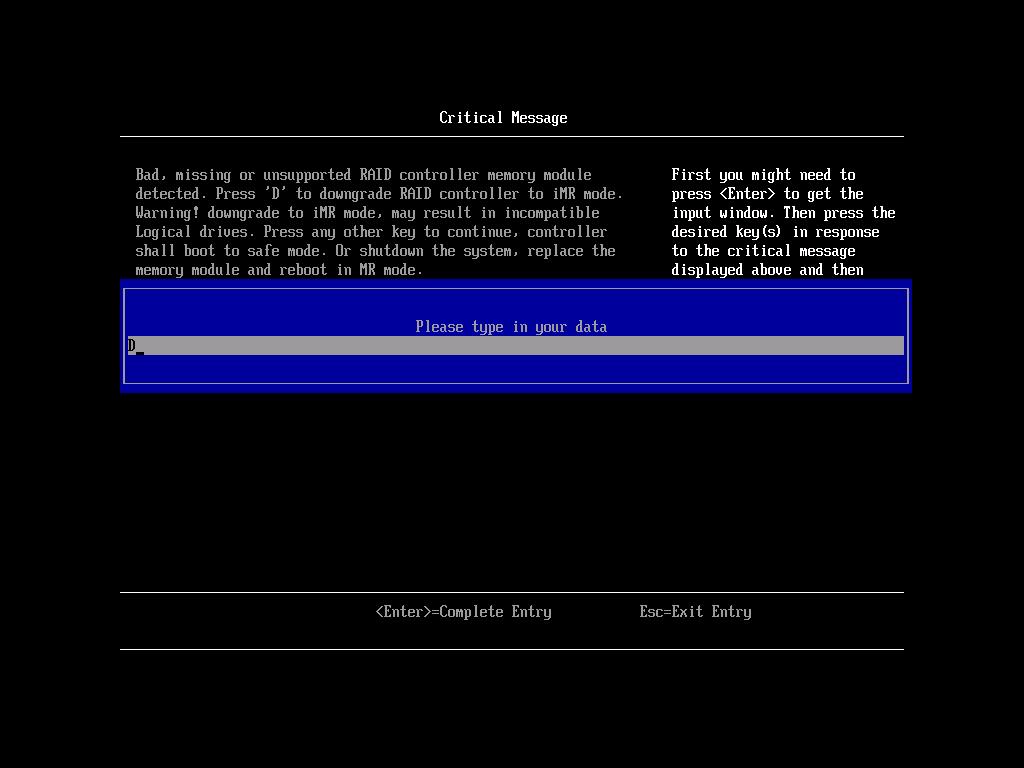 注意:请勿输入其他字符或者直接按回车键,错误操作会导致阵列卡锁定安全模式!