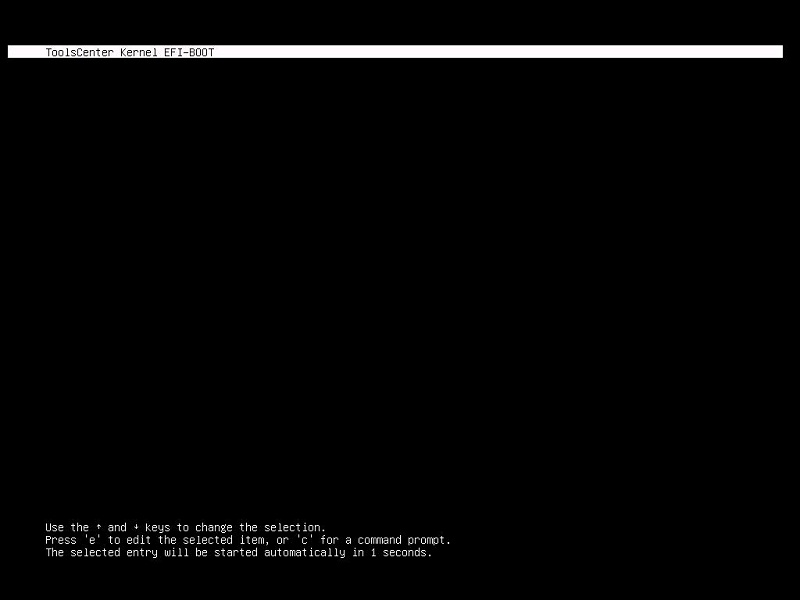 然后会出现一个类似Linux系统的EFI引导画面,选择ToolCenter Kernel EFI-BOOT这一项并按回车继续;