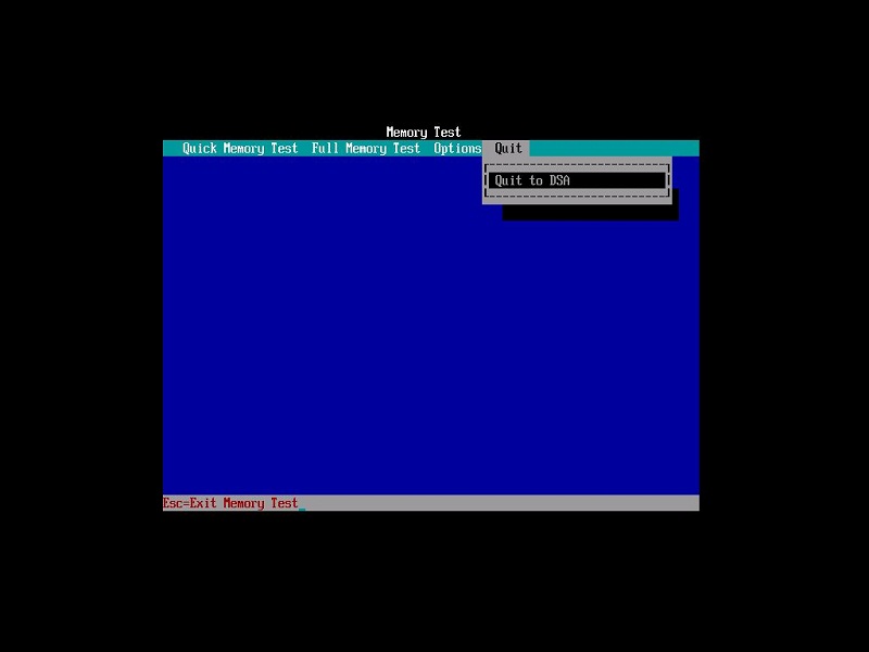 首先会进入内存测试(Memory Test)界面,如果不需要对内存进行测试,直接选择Quit中的Quit to DSA跳出到DSA;
