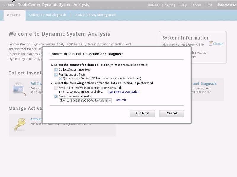 Run Diagnosis Tests是诊断测试,并可以选择Quick test/快速诊断,和Full test/完整诊断。选择Full test还会一起对CPU和内存进行压力测试。