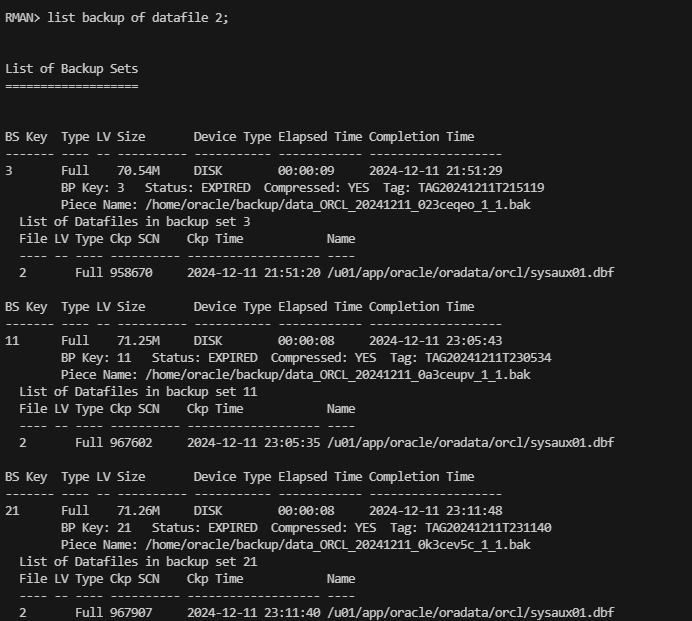 channel ORA_DISK_1: piece handle=/home/oracle/backup/data_ORCL_20241212_1a3che9i_1_1.bak tag=TAG20241212T214209