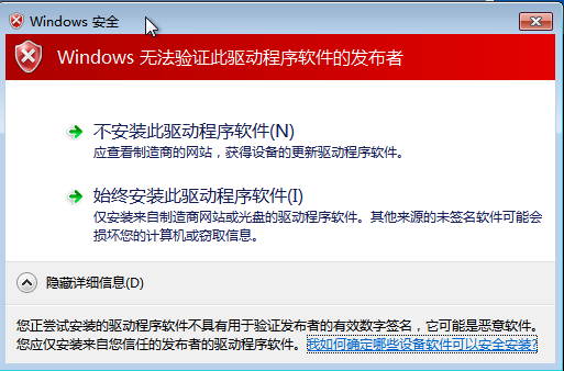 如果选择始终安装此驱动程序软件还是无法成功安装