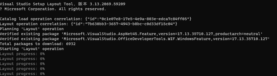 PS E:\vs2022> .\VisualStudioSetup.exe --layout E:\vs2022 --lang en-US zh-CN